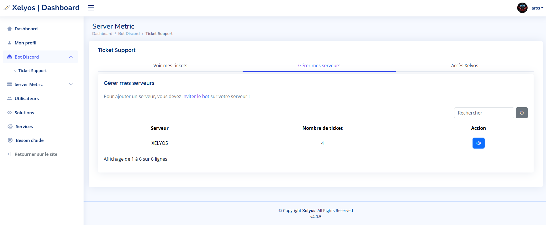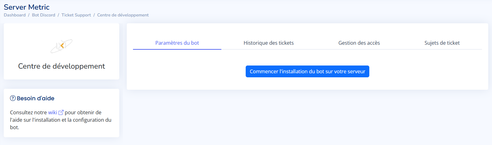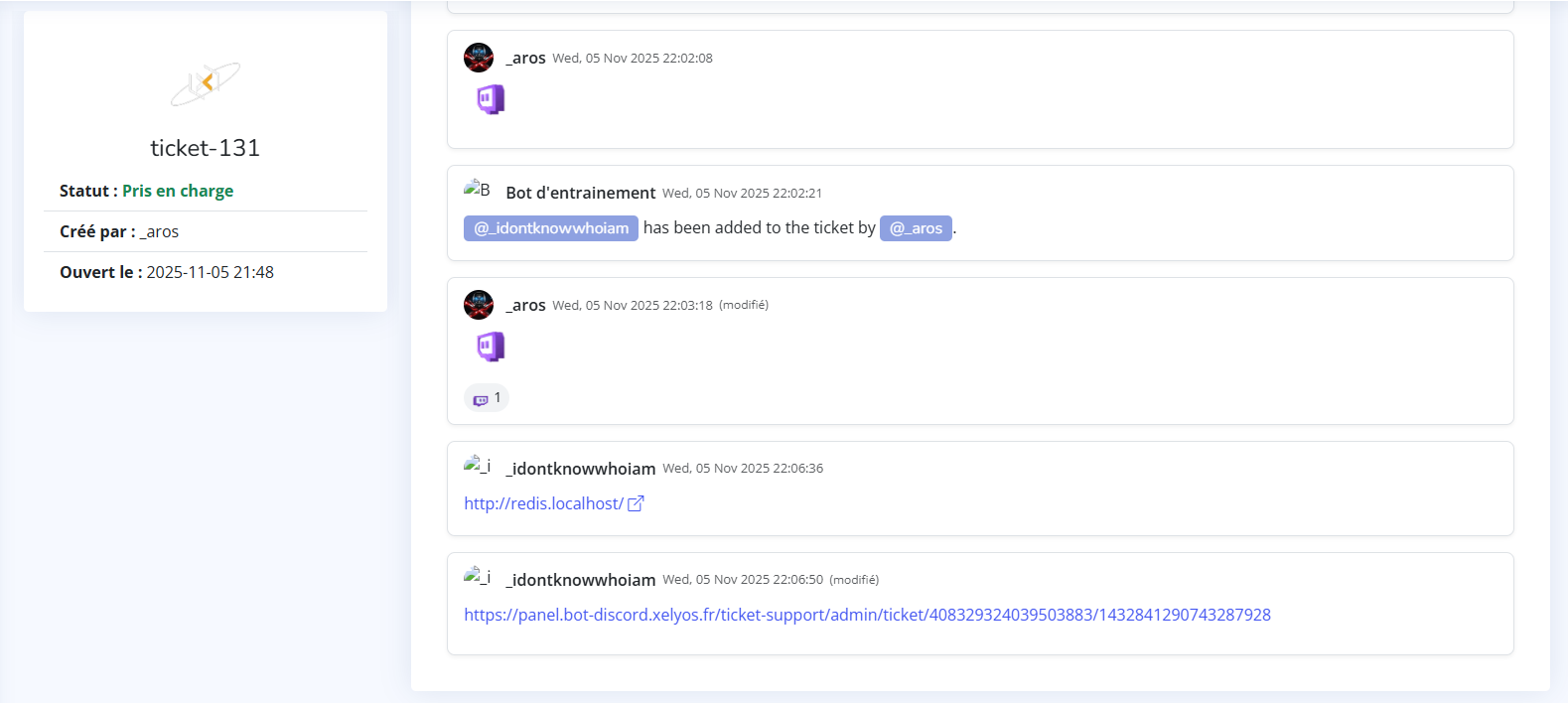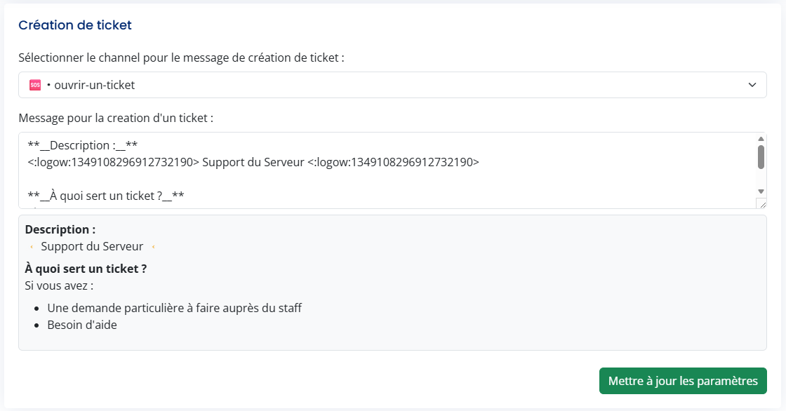 Le Bot Ticket Support est un outil permettant aux membres de votre serveur Discord de créer des tickets. La particularité de ce bot est qu’il permet à un utilisateur de Discord d’accéder à tous les tickets qu’il a créés depuis un panel web. Il est possible (en tant qu’utilisateur ou propriétaire) de consulter l’historique et le suivi de vos tickets où que vous soyez.